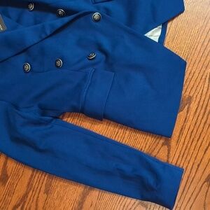Jules & Leopold royal Blue button front cropped knit career blazer NWT Sz XS