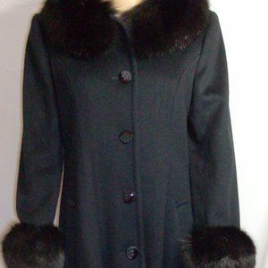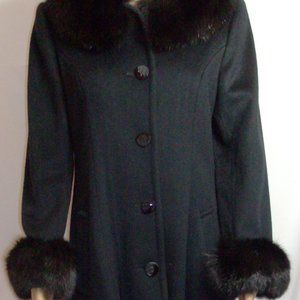 Jules Miller Full length Wool Coat with Fur collar and cuffs. Size 6