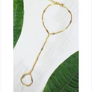 Designed to drape gracefully across the hand, the Serena Hand Chain connects a dainty 6” bracelet with a 7” ring chain (adjustable with extender), creating a look that’s both edgy and feminine. Whether you’re stacking it with your favorite rings and bracelets or letting it shine on its own, this 14K gold-plated statement piece is made to transition seamlessly from beach days to sunset soirées.