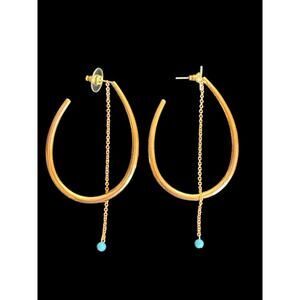 Jules Smith Women's Edie Hoops with Turquoise Stone Rose Gold Earrings 3” NWOT