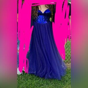 Great condition. Wore once. Beautiful blue, corset top dress. It fit very well and I am 5 foot 7 1/2 inches for reference!