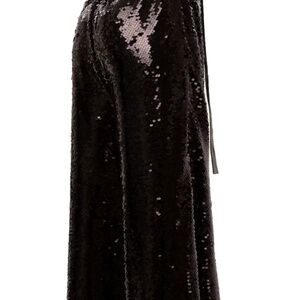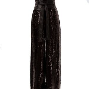 Gorgeous black sequins wide leg pants removable faux leather tie waist