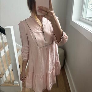 Elegant pink floral robe with a tie waist. Perfect for lounging.