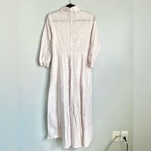 Excellent condition except for one small discoloration on the sleeve. It’s not noticeable. See photos. Armpit to armpit 19.5”. Waist 16.5”. Length 49”.