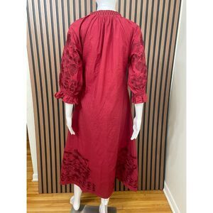 Julia Amory Women's Dress Midi Cotton Embroidered Long Puff Sleeve S Red Floral.