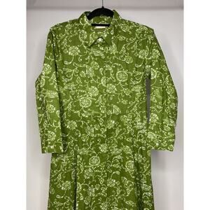 Julia Amory Women's Small Shirt Dress Maxi Green Floral 100% Cotton Pockets. Great condition.