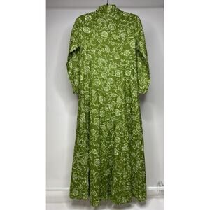 Julia Amory Women's Small Shirt Dress Maxi Green Floral 100% Cotton Pockets