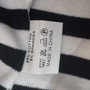 Julia Back and White Stripe Long Sleeve Body Con Mini Dress with Plenty of Stretch. 95% Cotton and 5% Spandex.