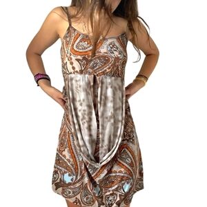 Julia Boho Floral Paisley Halter Silk Dress Size Large