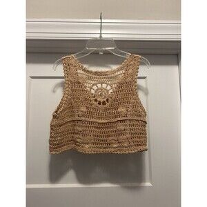 Julia By Love Beige Crochet Cropped Vest Shirt Tank Size Small Fairy Cottage