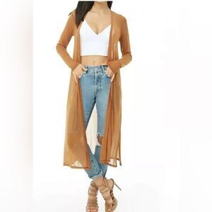 Julia By Love J Open Front Knee Length Sheer Cardigan Mocha Tan Size Medium