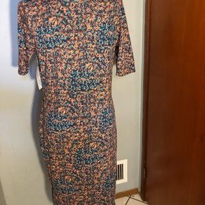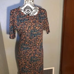 Great pattern with oranges and blues. Very versatile! Can be worn casually or on a date to a nice restaurant with a great pair of pumps. It is so soft to touch.
