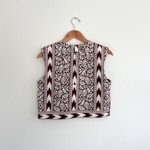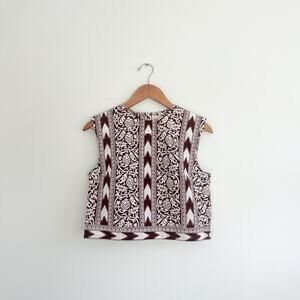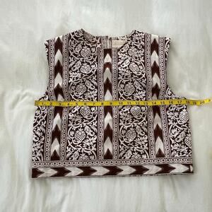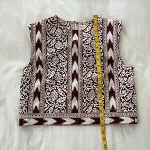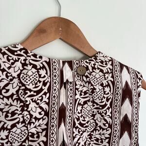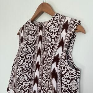 Julia India Amory Brown and White Coco Island Ikat Sleeveless Slim Shell Top XS