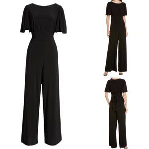 Julia Jordan Black Flutter Sleeve Stretch Jersey Wide Leg Jumpsuit Sz 12 in EUC with no visible flaws