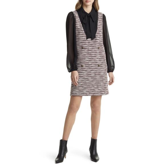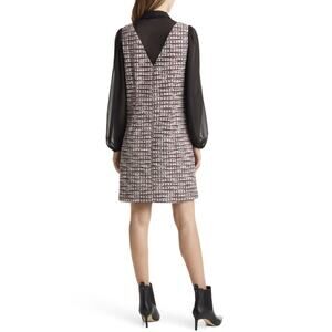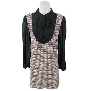 Julia Jordan Black Multicolor Tweed Bow Tie Balloon Sleeves Pinafore Button Down Blouse Mini Shirt Dress 8