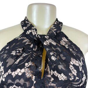 Julia Jordan Black & Nude Women’s Floral Lace Jumpsuit Halter Neck Sz 12