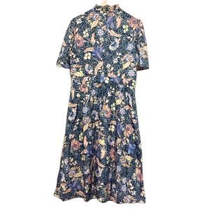 Julia Jordan Blue Floral Ruffle Neck Bell Sleeve Fit & Flare Midi Dress Sz 16