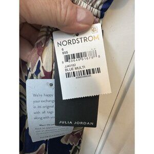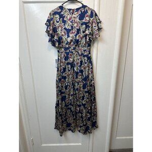 Julia Jordan Blue Multi Floral Dress Midi Sz 6 Tiered Navy Ruffle Flutter Sleeve