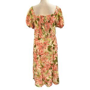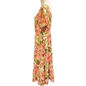 Julia Jordan Dress Womens 14 Tropical Floral Smocked Tiered Midi Vacation Resort