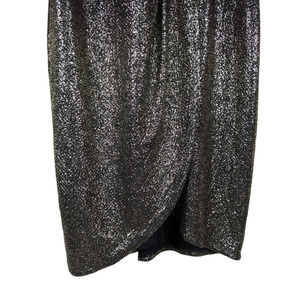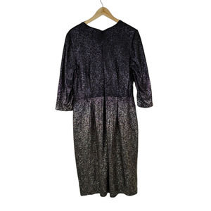 Julia Jordan Dress XL Black Silver Ombre Surplice Neck Pleated Sparkle Cocktail