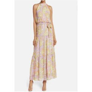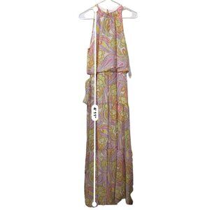 Julia Jordan Paisley Pastel Tiered Sleeveless Halter Maxi Dress