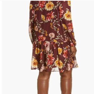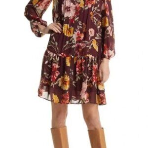 Julia Jordan Floral Print Pleated Long Sleeve A-Line Dress NWOT