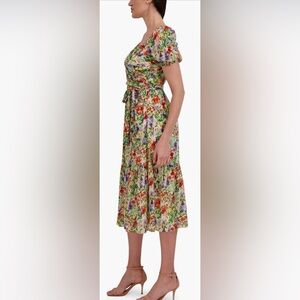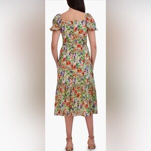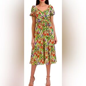 Julia Jordan Floral Puff Sleeve Fit & Flare Midi Dress Size 8 NWT V Neck
