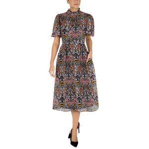Julia Jordan Flutter Sleeve Ruffle Mock Neck Midi Dress Floral Black Size 8