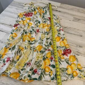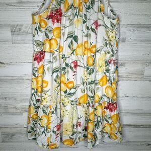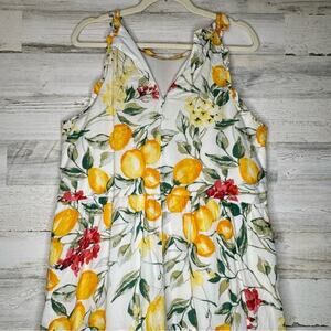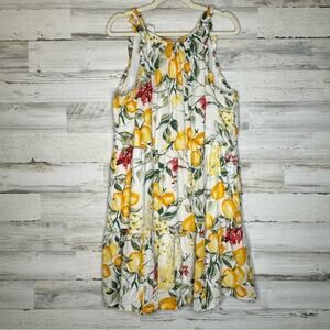 🍁 Julia Jordan Lemon Print Cotton Summer Sundress Mini Dress Lined Ivory Multi