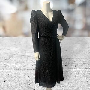 Julia Jordan Long Puff Sleeve Black & Gold V Neck Dress