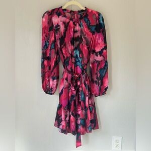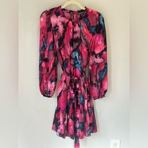 Julia Jordan Pink Blue Printed Balloon Sleeve Tie Belt Tiered Fit & Flare Dress
