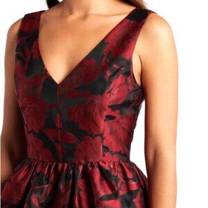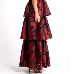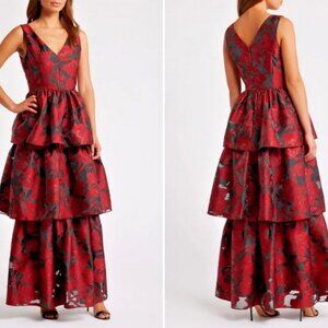 Julia Jordan Red Black Metallic Floral Sleeveless Tiered Gown Dress