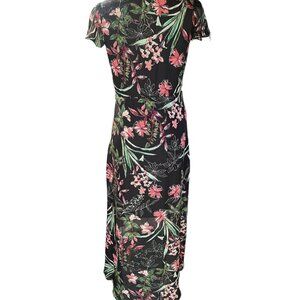 Julia Jordan Size 6 Floral Dress High Low Hem B & W Green Pink Lined Faux Wrap