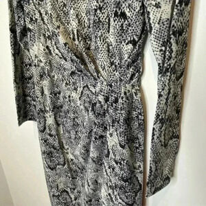 Julia Jordan Snakeskin Twist Asymmetrical Dress size 6 Long Sleeve. Condition is "Pre-owned". Great condition. No flaws. Measurements: 16 inch chest 14 inch waist 40 inch length 24 inch arm length