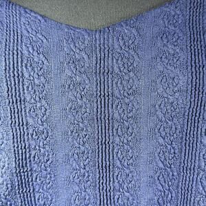 Tonal texture starts the style story for this pretty blue dress designed with a sweet neckling and a slightly spicy side slit.