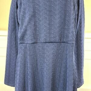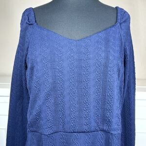 Julia Jordan Sweetheart Neck Long Sleeve Knit Dress Navy Blue Textured Size 14