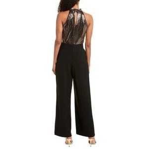 Julia Jordan Twist Halter Neck Jumpsuit Gold Metallic Wide Leg Size 8 NWT
