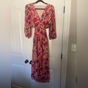 Chic dress by Julia Jordan. Features bold pink and orange floral patterns. Size 10 beautiful dress true to size