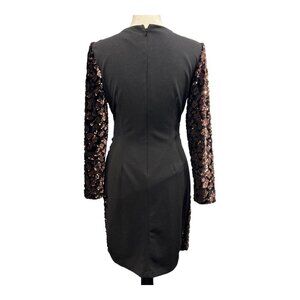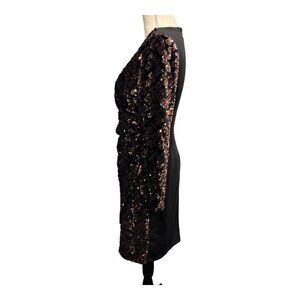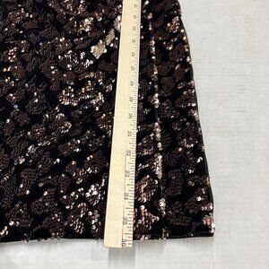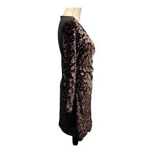 Julia Jordan Womens 6 Sequin Dress Faux Wrap Deep V Neck Copper Brown Party