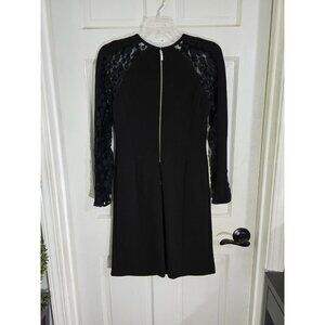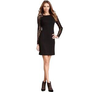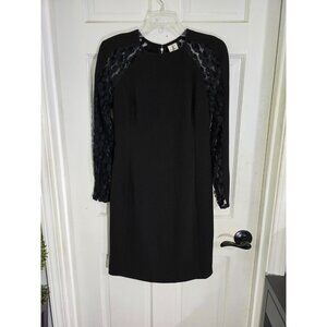 Julia Jordan Women's Black Mini Shift Dress Polka Dot Lace Trim Long Sleeve