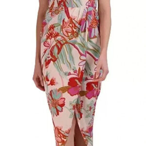 Bright and bold with an artistic floral print, julia jordan's flowy maxi dress is finished with a halter neckline for a sophisticated touch. Great condition. Worn once for a bridal shower