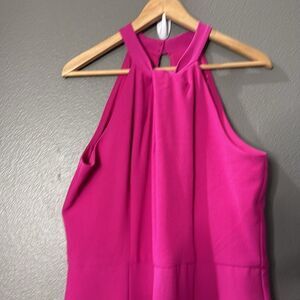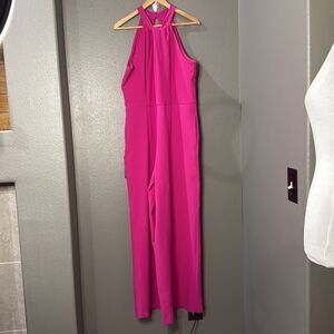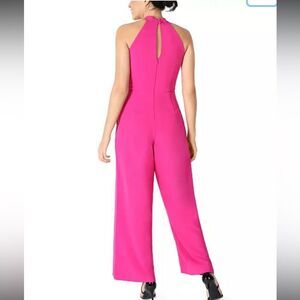 Elegant halter jumpsuit. Vibrant pink color. Perfect for any occasion.
