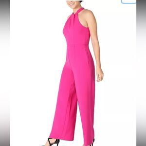 Julia Jordan Fuchsia PinkTwist Front Halter Jumpsuit
