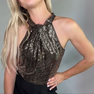 Julia Jordon Black and Metallic Gold High Neck Halter Jumpsuit Size 6