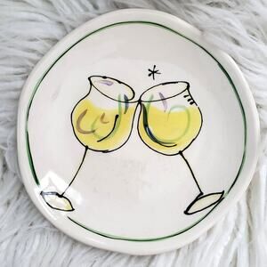 Julia Junkin Studio vintage snack/dessert plate set. These fun plates with wine glasses and wine bottles depicted on them are in great condition and comes from a smoke and pet-free environment).