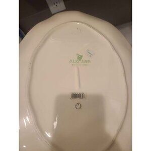 No chips, scratches etc. Excellent condition! The purple is so pretty as the main color here.