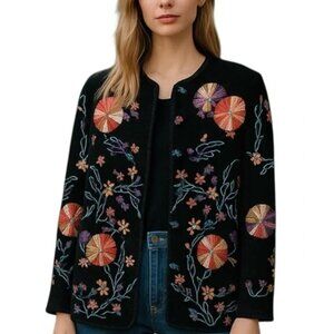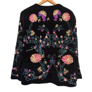 Julia Kim Heavily Embroidered Boho Floral Black Colorful Jacket Oversized Small