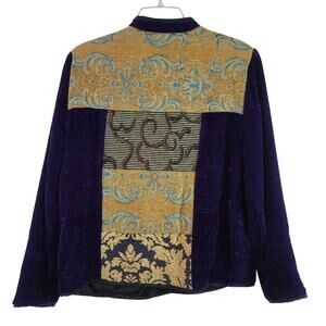 Julia Kim Purple Gold Tapestry Chenille BOHO Vintage Patchwork Jacket Blazer S