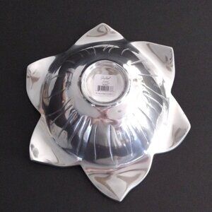 Create a moment for your family and guests using this magnificent bowl at your next dinner party. It is food safe and can withstand the freezer and up to 250 degrees Fahrenheit in the oven. Hand made from sand-cast aluminum and hand-painted with crushed mother-of-pearl infused enamel for a gorgeous iridescent shine. Never used and with the original maker's label still attached.