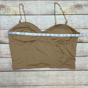 Great pre-owned condition. Julia Love By J Tan Bustier Crop Top • Size XL • Gold Chain Straps • Back Zip • Corset Style • Stretchy fabric blend • Padded cups • No stains, rips or holes.